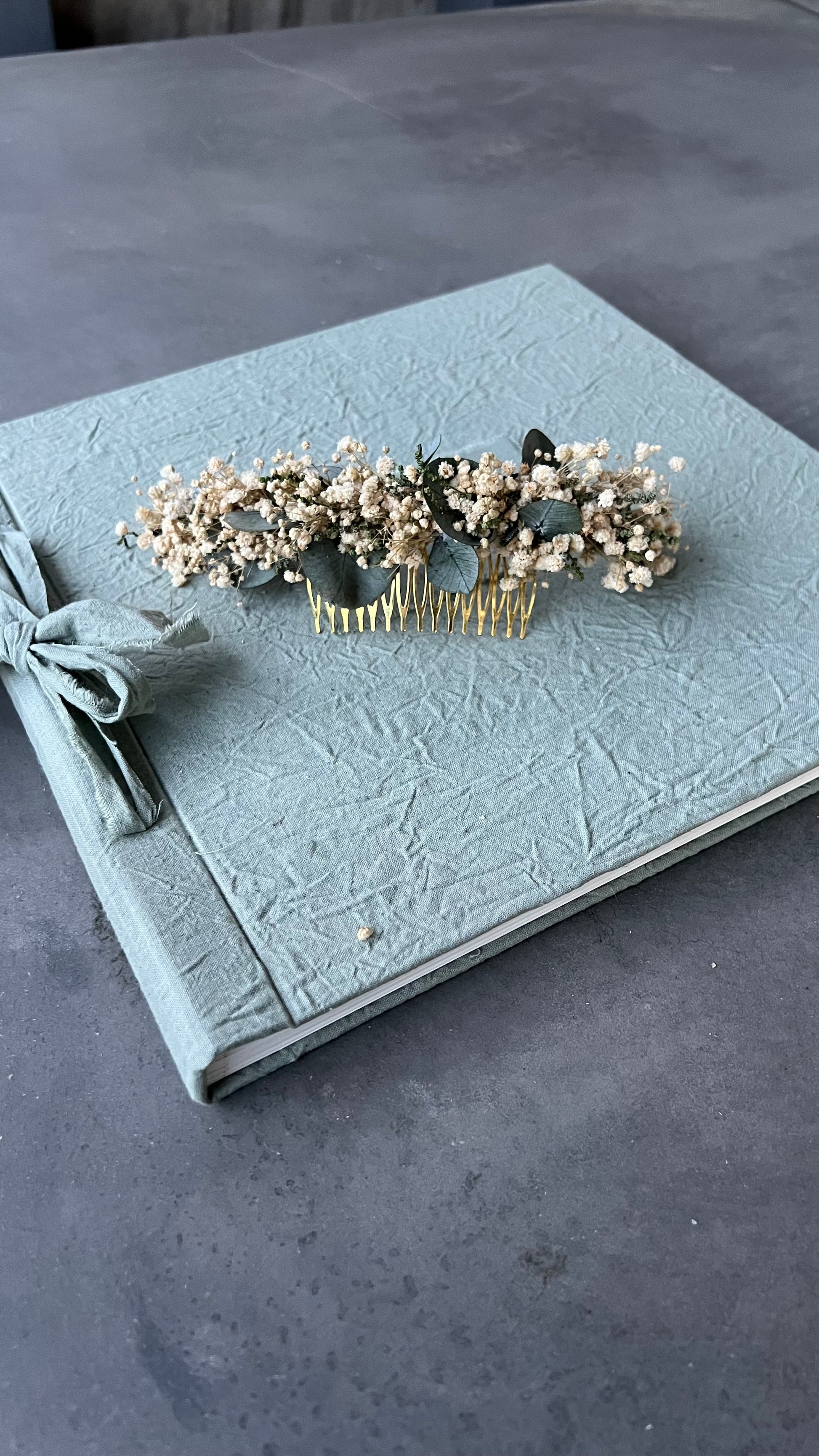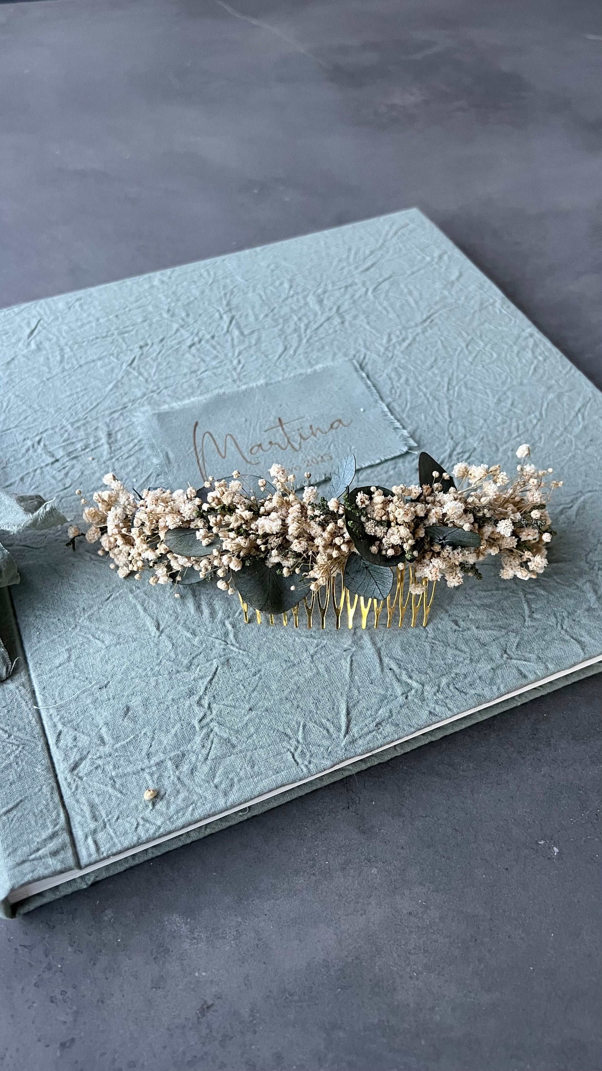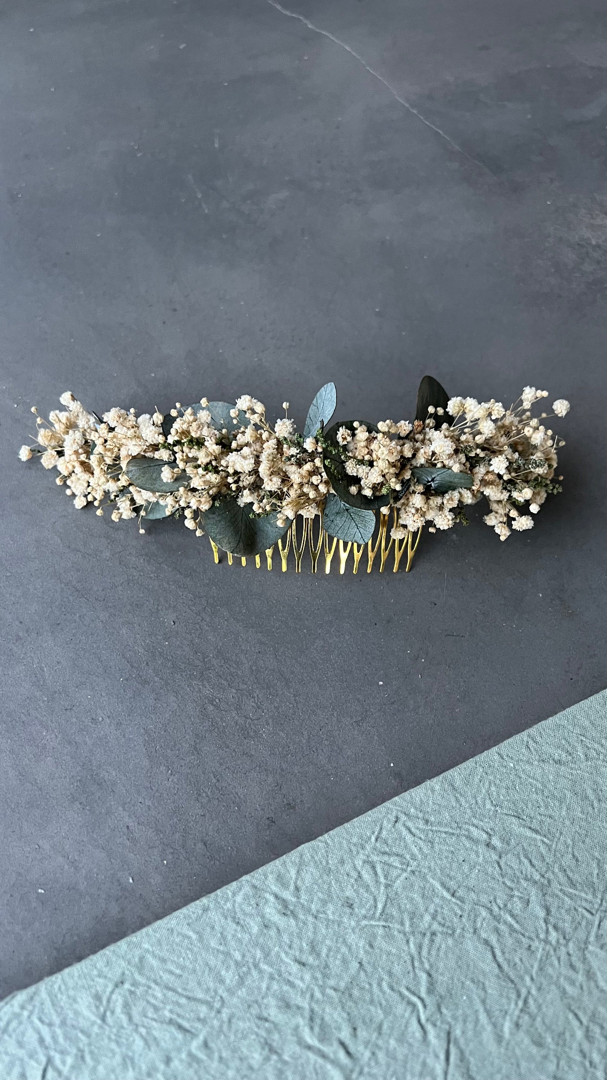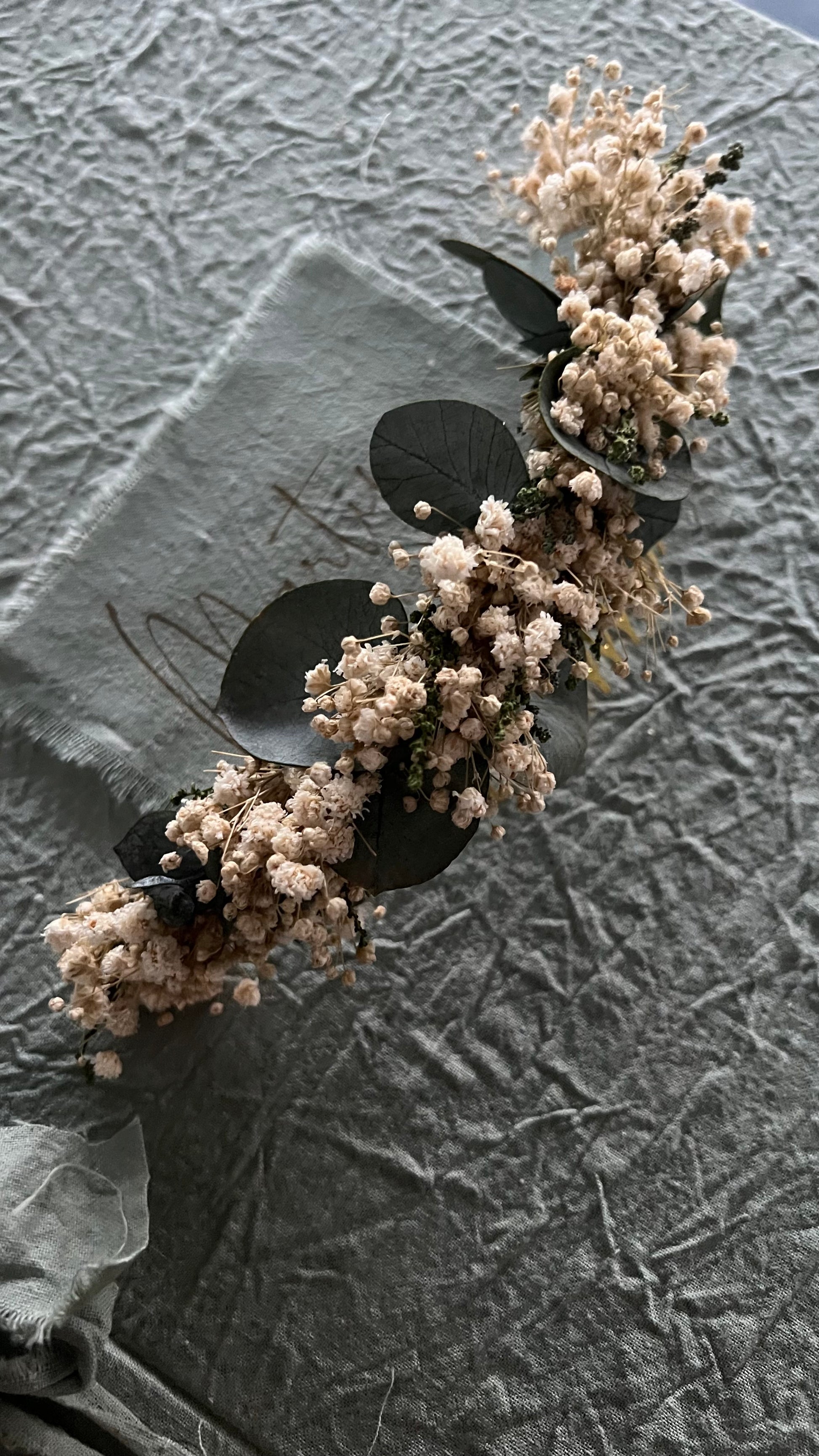 Peinecillo de 20cm aproximadamente con paniculata, y eucalipto preservado.